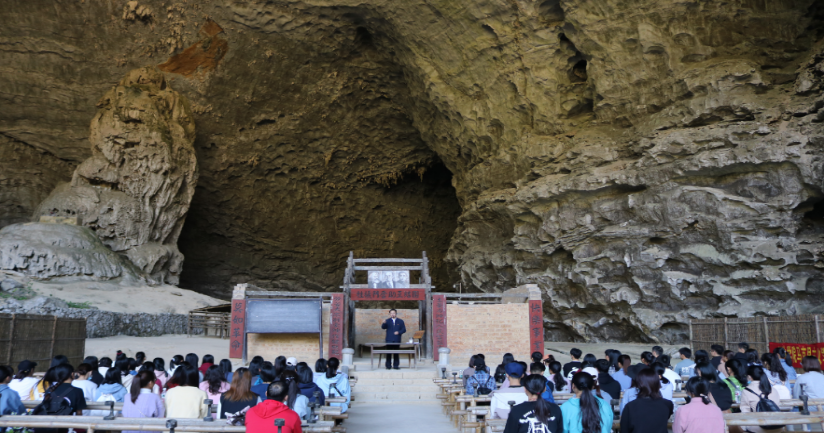 师生们在列宁岩——广西农民运动讲习所旧址聆听了东兰县组织部党建政策理论研究室主任黄福军做题为“弘扬韦拔群精神”的讲座。黄福军为大家讲述壮族人民的好儿子、深受人民群众爱戴并亲切称为“拔哥”的人民领袖韦拔群伟大光辉的一生。当师生们看到岩内尚保存完好的历史遗迹,听到革命先辈们被杀害、惨烈悲怆的牺牲后湿红了眼眶,深感革命战争年代坚持革命的不易。韦拔群同志把他的一生献给了党、献给了人民解放的事业,对敌斗争中始终做到英勇顽强、百折不挠,不愧是劳动人民的英雄,不愧是名符其实的人民群众的领袖,不愧是模范的共产党员。通过讲座,师生们对广西革命志士韦拔群的赤胆忠心、伟大革命事业有了深刻的认识,更加坚定要将革命精神内化于心、勤学笃行,要接好历史的接力棒,以拔群精神为鼓舞,争做担当民族复兴大任的时代新人。