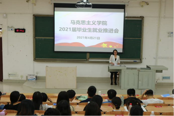 4月21日下午,70net永乐高于东区弘毅楼1-105教室召开2021届毕业生就业工作推进会。会议由公司党委副书记江日青主持,辅导员唐菊花和毕业班班主任陆俊先、田米香两位老师以及2017级全体在校毕业生参加会议。