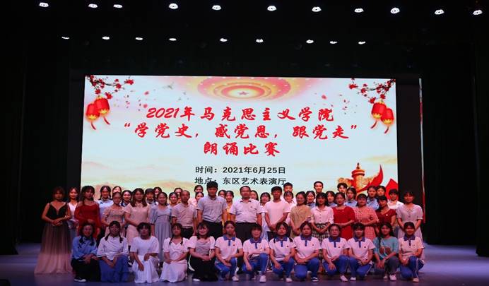 6月25日晚,70net永乐高在东区艺术楼演播厅举办“学党史 感党恩 跟党走”朗诵比赛暨团委、员工会第三届团学干部聘书颁发仪式,70net永乐高副经理韦宏思、团委书记易万臣、辅导员卢巍丹、公司教师梅永愿、谭双桃、顾结龙出席并担任评委,公司全体员工到场观看比赛。陆创宇、陈雅丽担任本次活动的主持人。