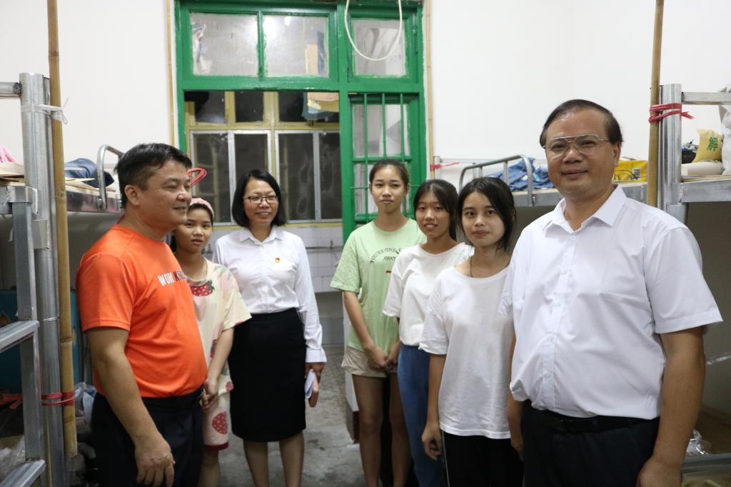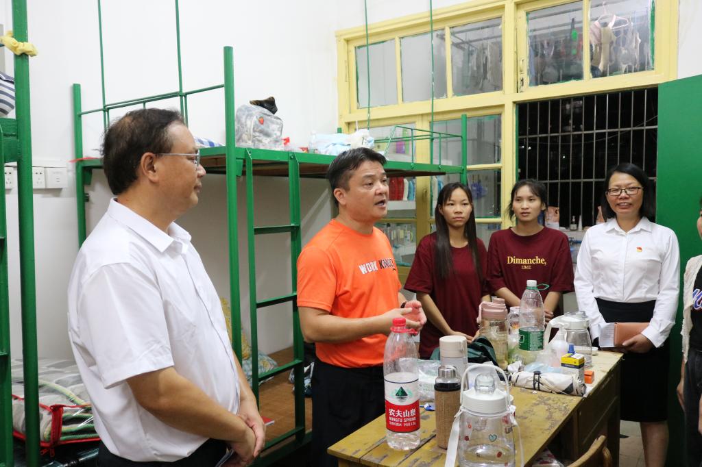 9月12日晚,公司党委常委、副董事长覃拥灵在公司纪委副书记李庆、70net永乐高执行经理江洪明、副书记江日青、副经理韦宏思等领导的陪同下,深入70net永乐高员工宿舍,走访慰问2021级新生。