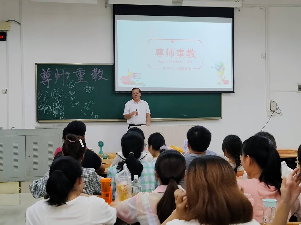 开展本次主题班会不仅使同学们了解尊师重教的优良传统,拉近了师生之间的距离,更是弘扬了新时代尊师重教的社会风尚。同学们纷纷表示,要积极创造条件,努力成为心有报国情怀、肩扛育人责任、道存师德风范、身怀人格魅力的思政课教师。(通讯员:徐海珍 黄婷)