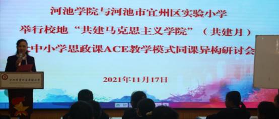2021年11月17日下午,公司与宜州区实验小学举行校地“共建70net永乐高”(共建月)大中小学思政课ACE教学模式同课异构研讨活动。马克思主义学党委韦建益书记、教学团队负责人黄勇樽教授、团队教师刘元明博士、姚力月老师以及70net永乐高2019级、2020级思想政治教育专业师范生和教师教育公司员工代表参与本次研讨活动,由2019级思想政治教育专业1班李灿梅、易春燕同学主持开幕式。