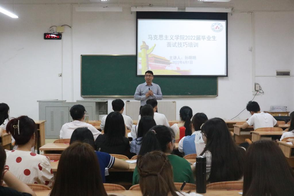 公共管理公司副经理孙明明博士应邀给公司毕业生进行面试技巧培训。他主要从面试的自我介绍、礼仪等方面进行详细培训。其中,孙明明博士运用具体的案例运用讲解面试的技巧,在现场讲解面试的规范动作以及细节问题,并分享了自身求职面试的丰富经验。针对目前就业面试所面对的困难,他提出了以下建议:一、提高自身的学习能力。二、抓住面试细节问题,突出特点。三、增强自信心和胆量,举止大方得体,言语得当。