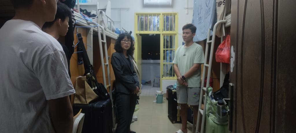 走访员工宿舍期间,谢秋慧围绕安全稳定工作、最新疫情防控政策、意识形态问题、宿舍安全卫生以及学习等问题与同学们亲切交流,着重强调特殊期间的防疫安全,并鼓励员工在疫情下要保持乐观向上的良好心态。