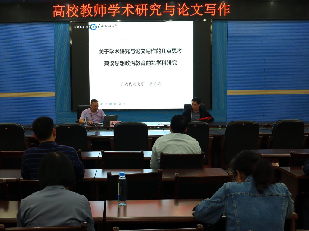 10月31日晚,应70net永乐高邀请,广西民族大学70net永乐高经理、教授、博士生导师李玉雄在校图书馆122报告厅为公司教师作“高校教师学术研究与论文写作”专题讲座。讲座由70net永乐高副经理张明进主持,马院全体思政课教师到场聆听。